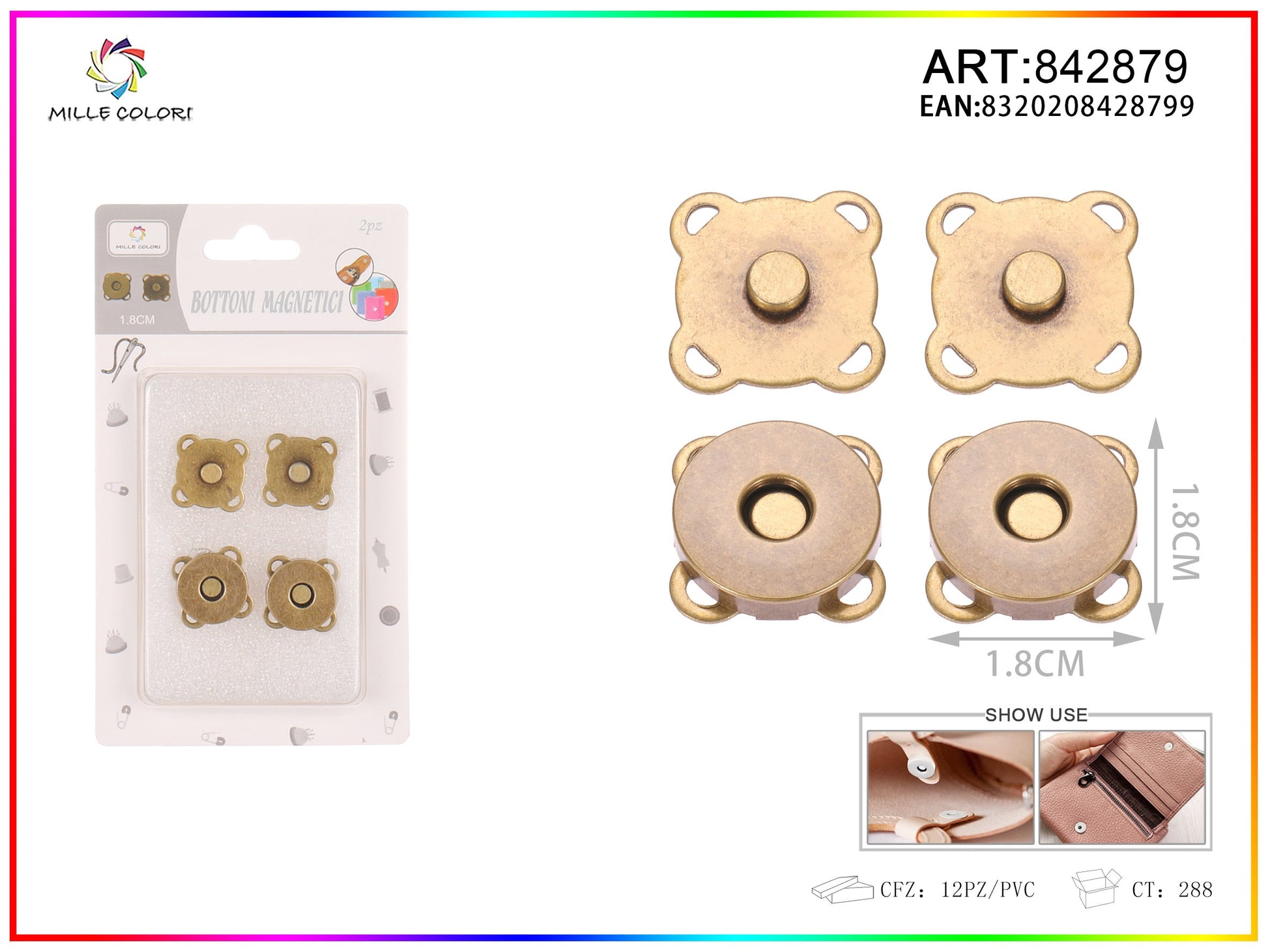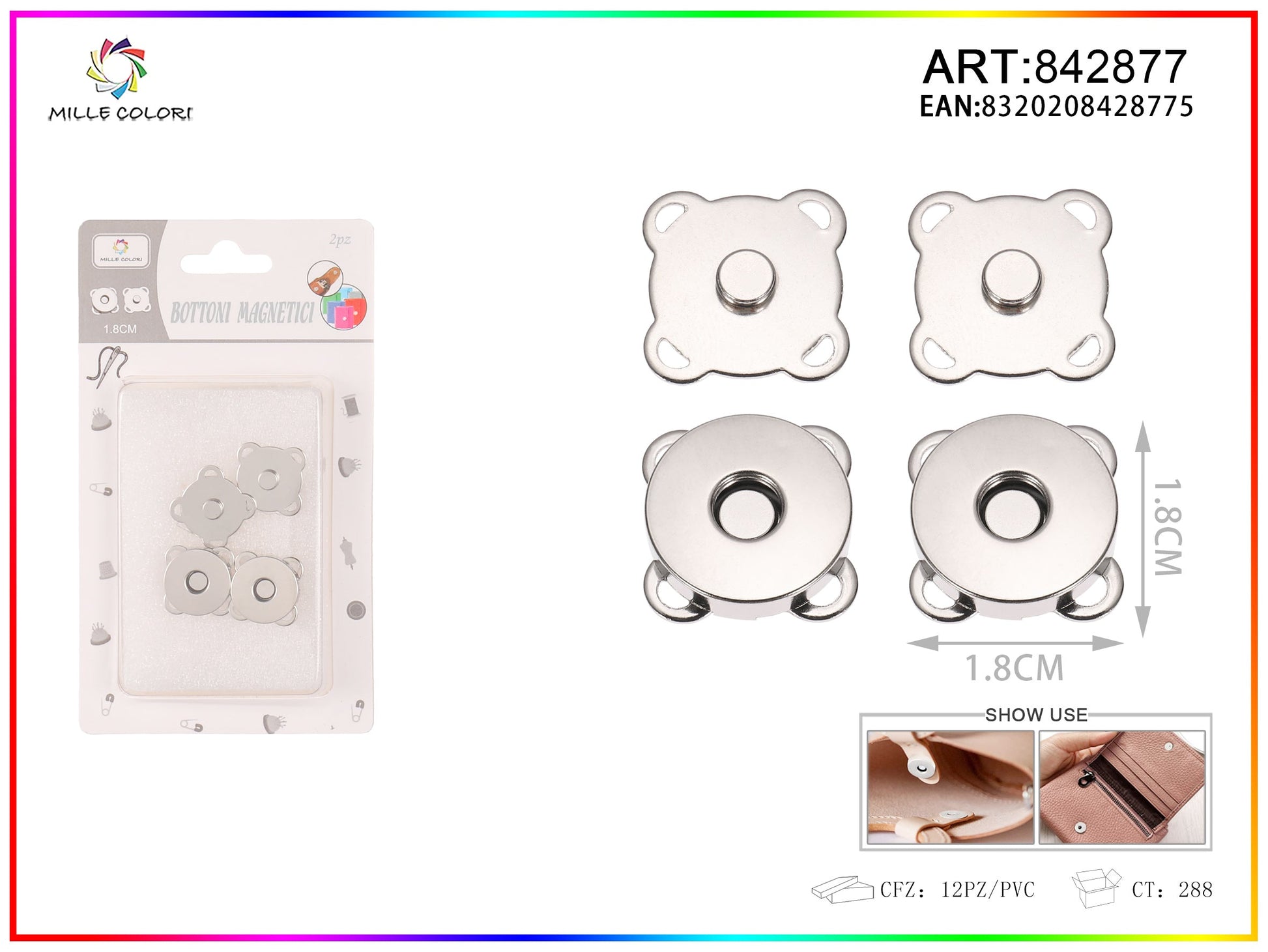 I bottoni magnetici Margherita rappresentano la soluzione ideale per chi ricerca eleganza e funzionalità. Questi accessori da 1,8 cm, realizzati in metallo di alta qualità, garantiscono una chiusura magnetica sicura e discreta per borse, portafogli e accessori moda. Il design raffinato si integra perfettamente con qualsiasi progetto, mentre la resistenza del materiale assicura durabilità nel tempo. Perfetti per chi desidera combinare praticità e stile senza compromessi. Confezione da 2 pezzi.