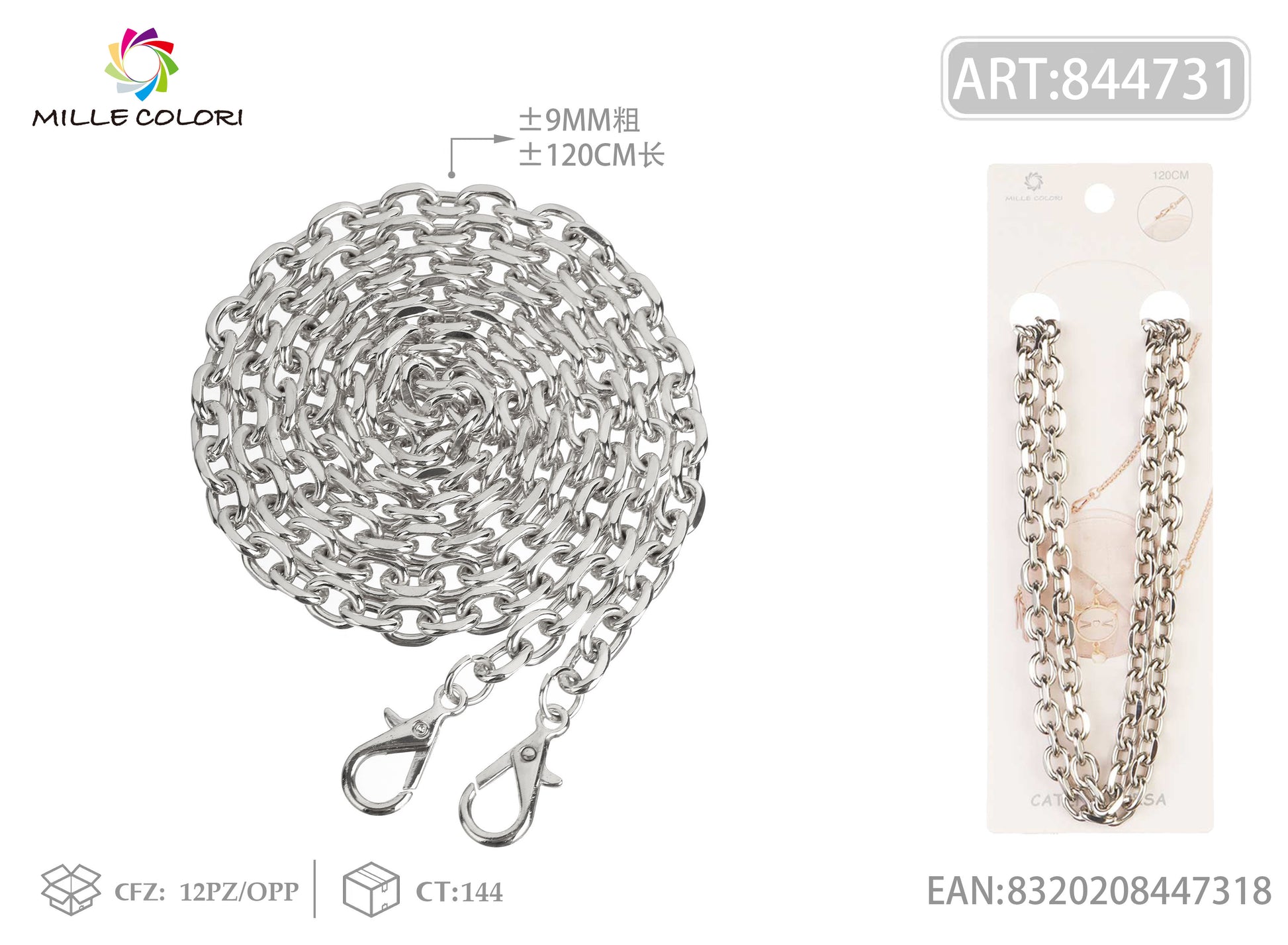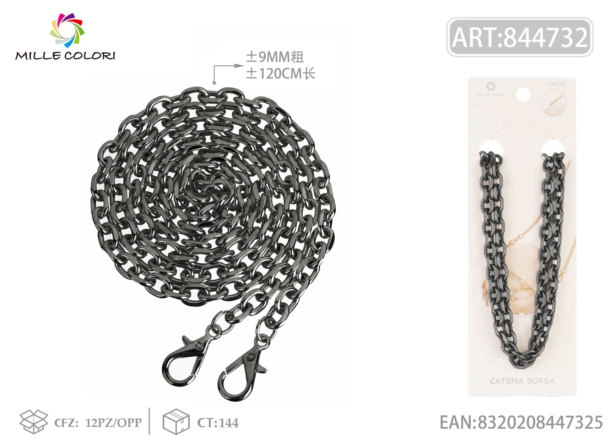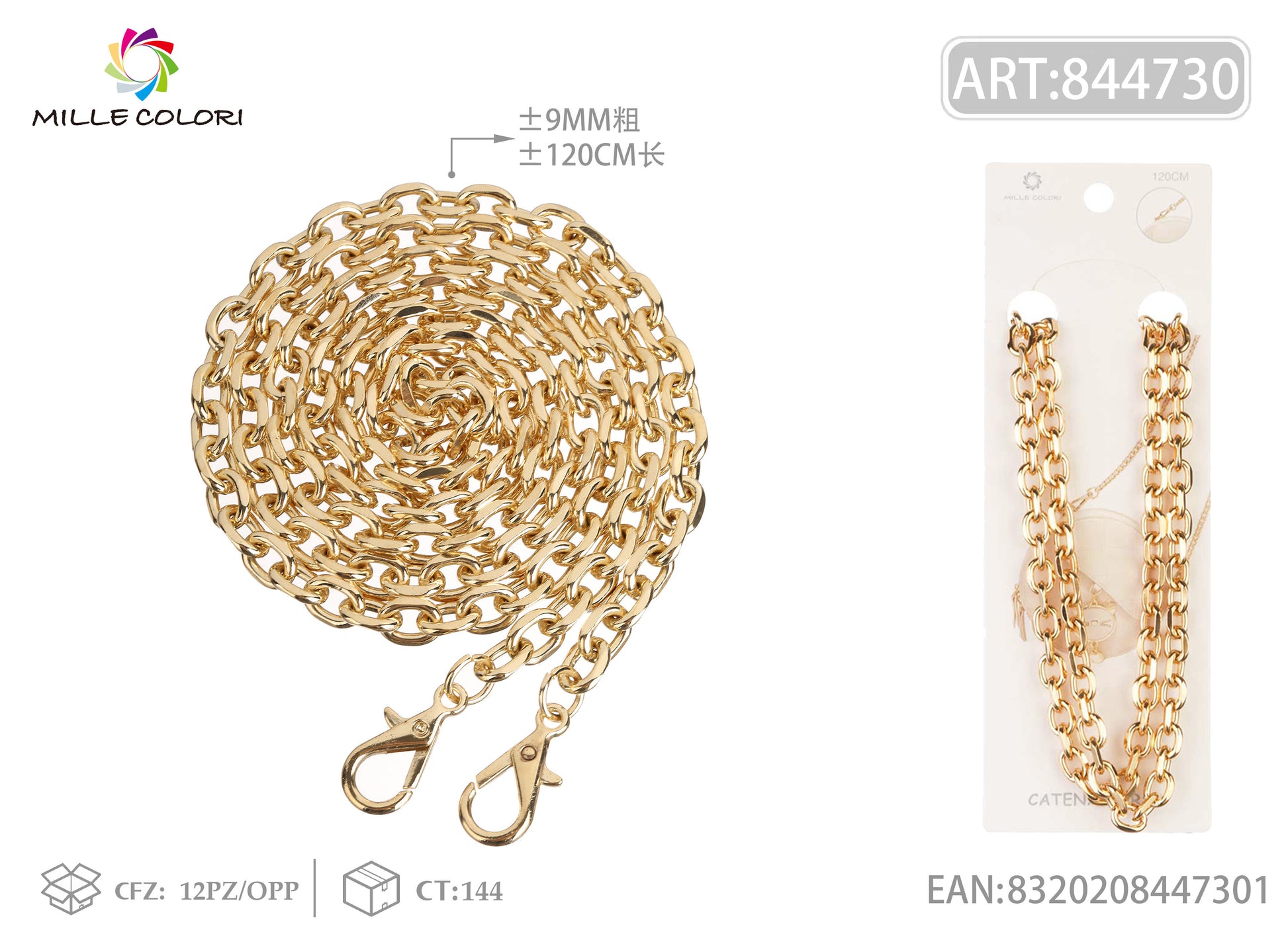 Catena per Borsa in Metallo Dorato Tracolla con Maglia e Moschettoni - 120 cm/9mm