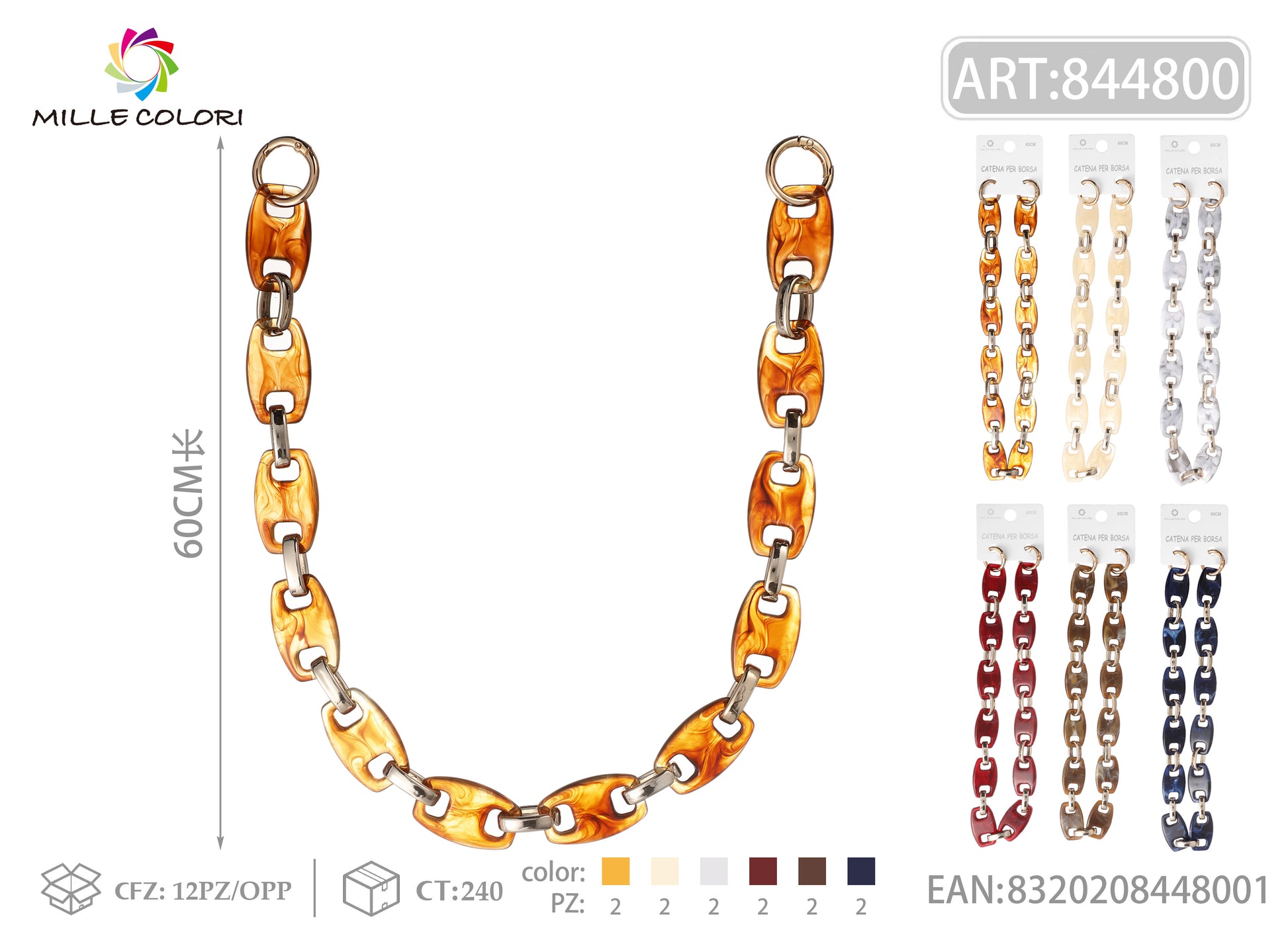 Catena per Borsa Maglie Rettangolari Curve in Resina Effetto Marmo – 60CM