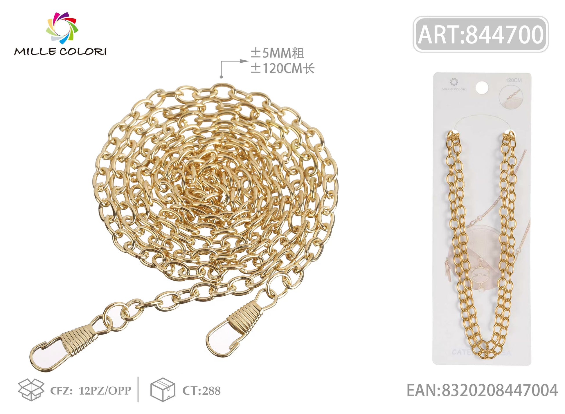 Catena per Borsa Tracolla Dorata in Metallo con Maglie Spesse e Moschettoni - 120 cm/5mm