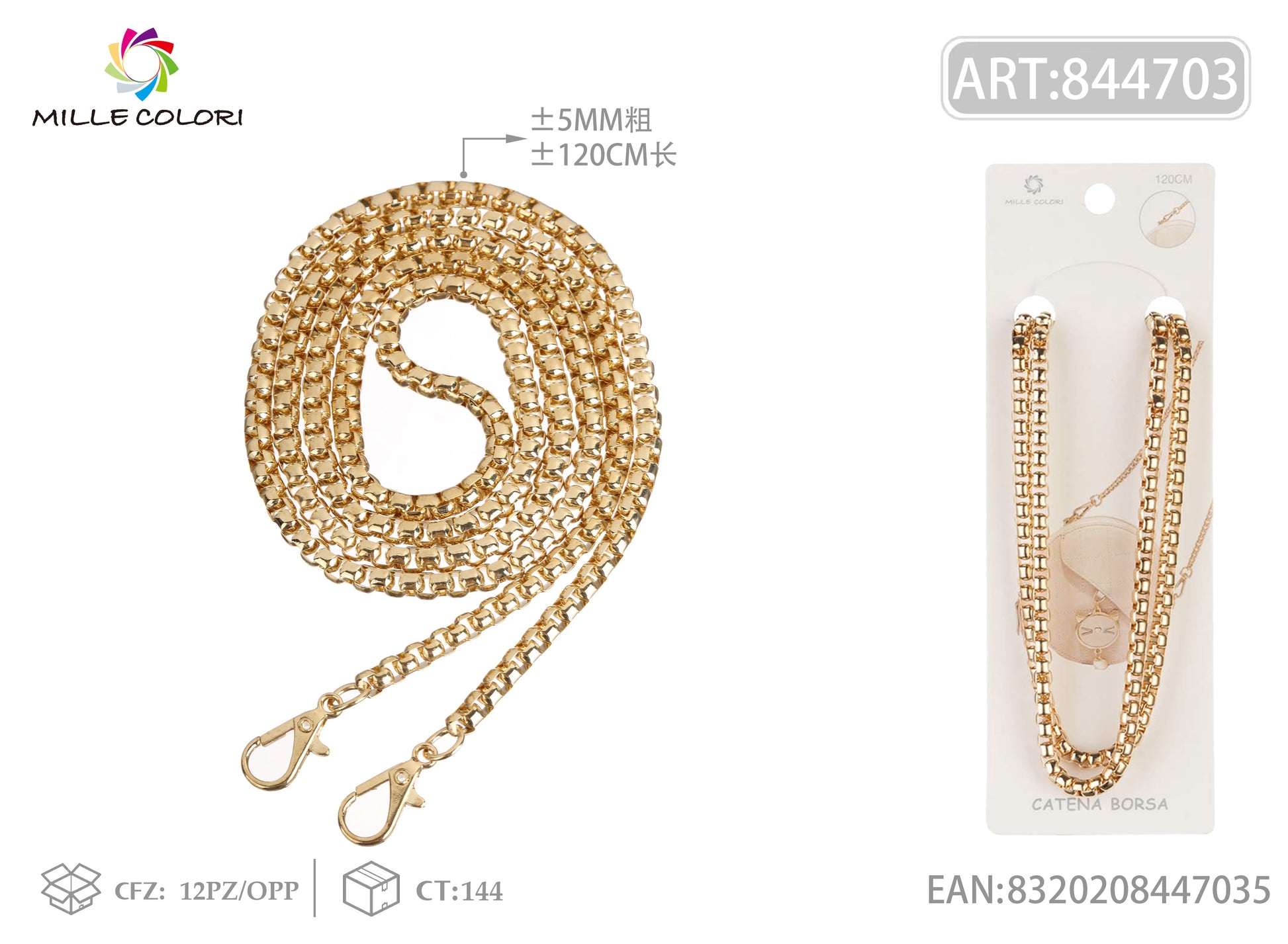 Catena per Borsa Tracolla in Metallo Dorato con Maglie Quadrate e Ganci a Moschettone - 120 cm/5mm