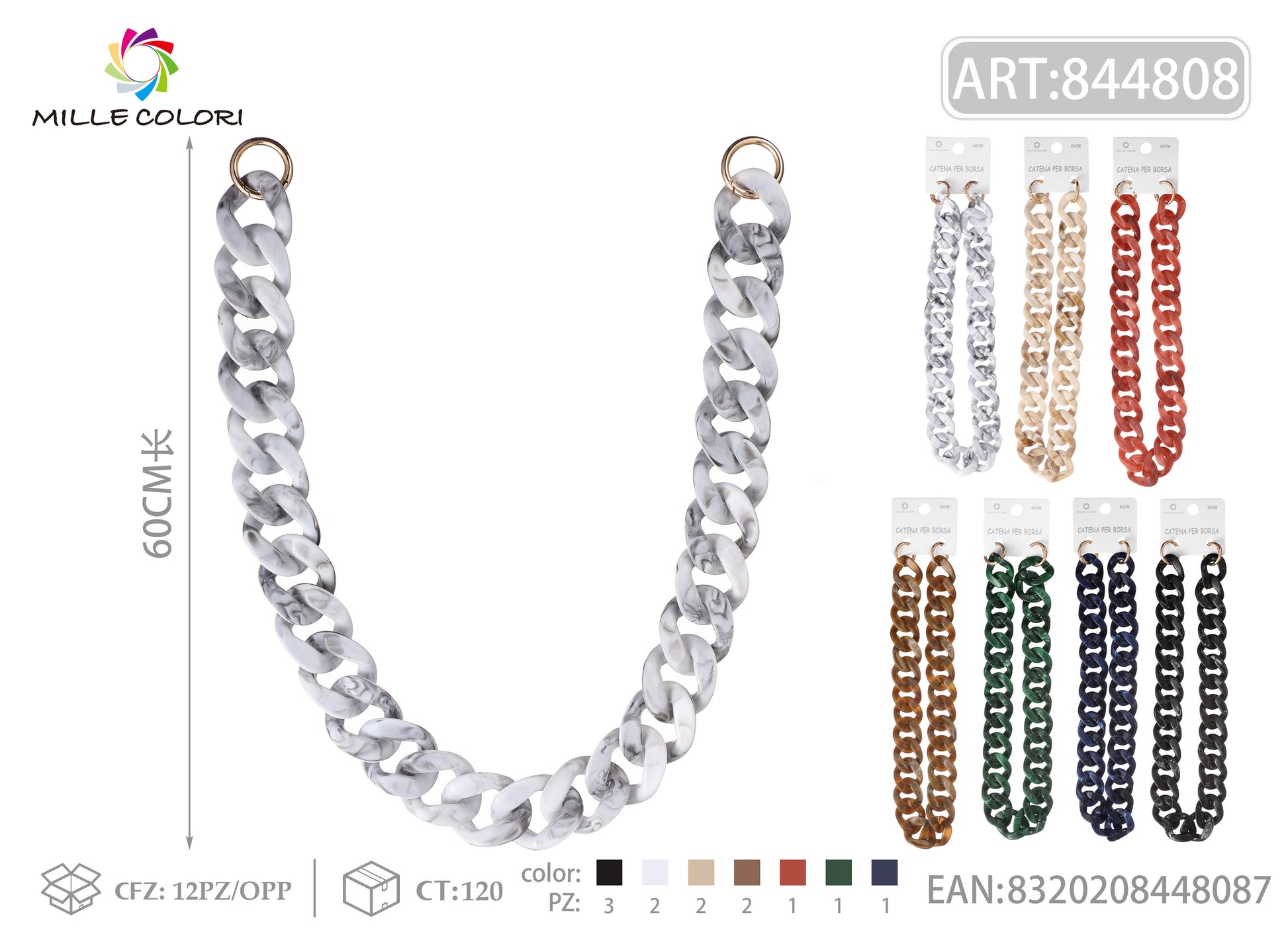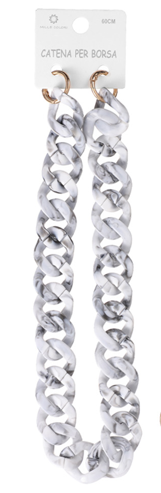 - Design elegante e moderno: Catena in resina acrilica con effetto marmorizzato, perfetta per aggiungere un tocco di stile a qualsiasi borsa.