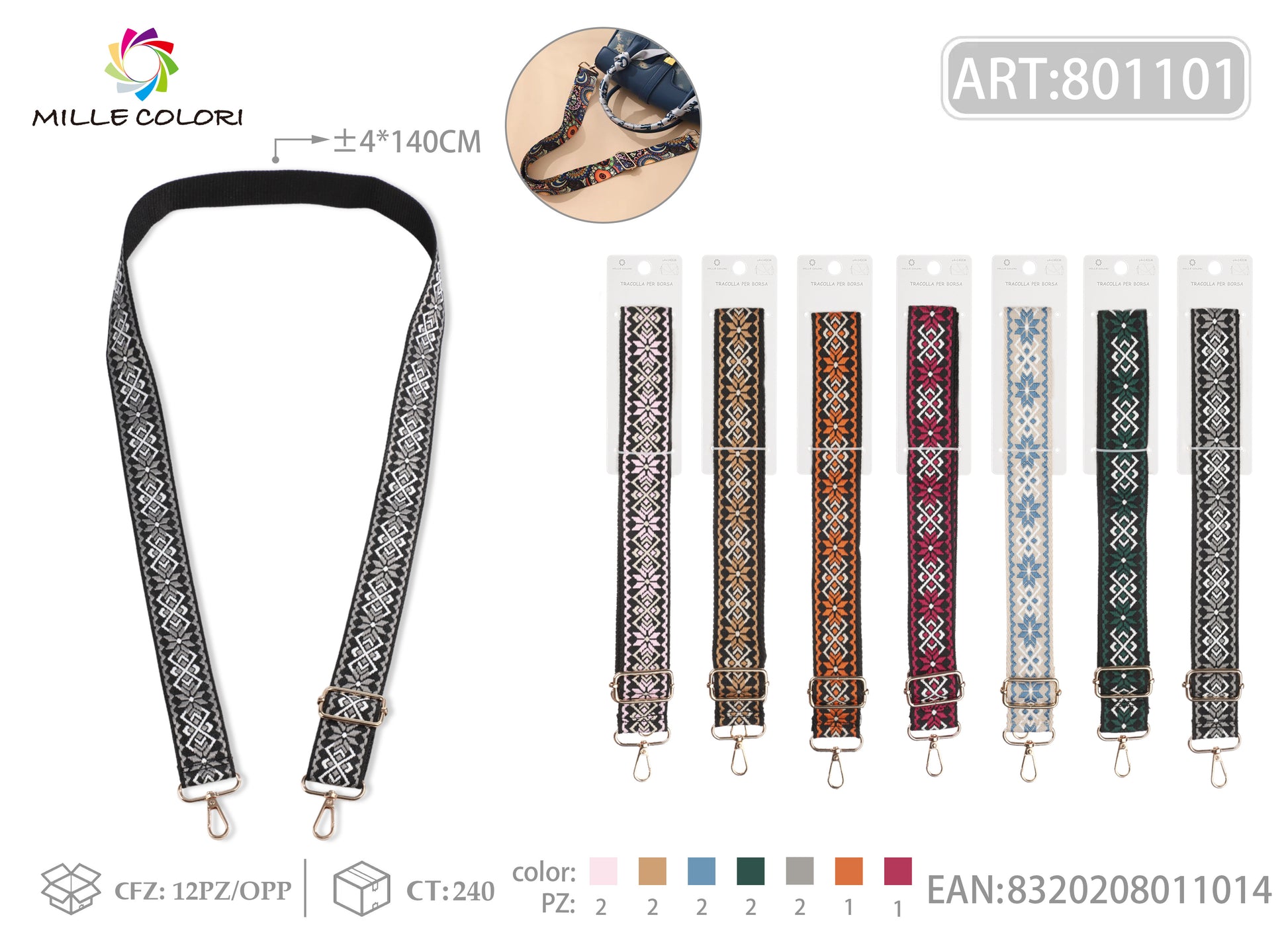 Tracolla Regolabile per Borsa Cinturino Stile Etnico in Tessuto, Ganci in Metallo -140cm/4cm