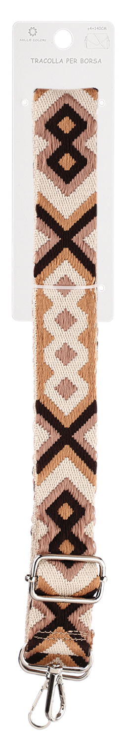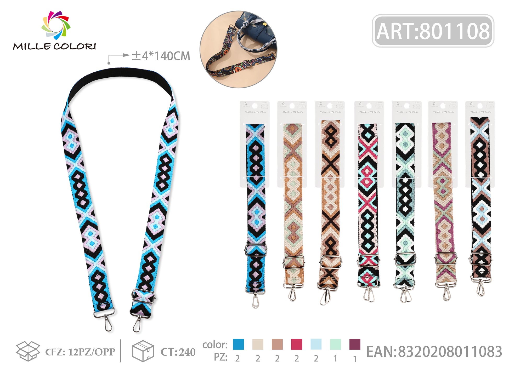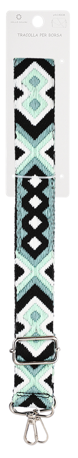 Tracolla Regolabile per Borsa Cinturino con Motivo Etnico Multicolore, Ganci in Metallo -140cm/4cm