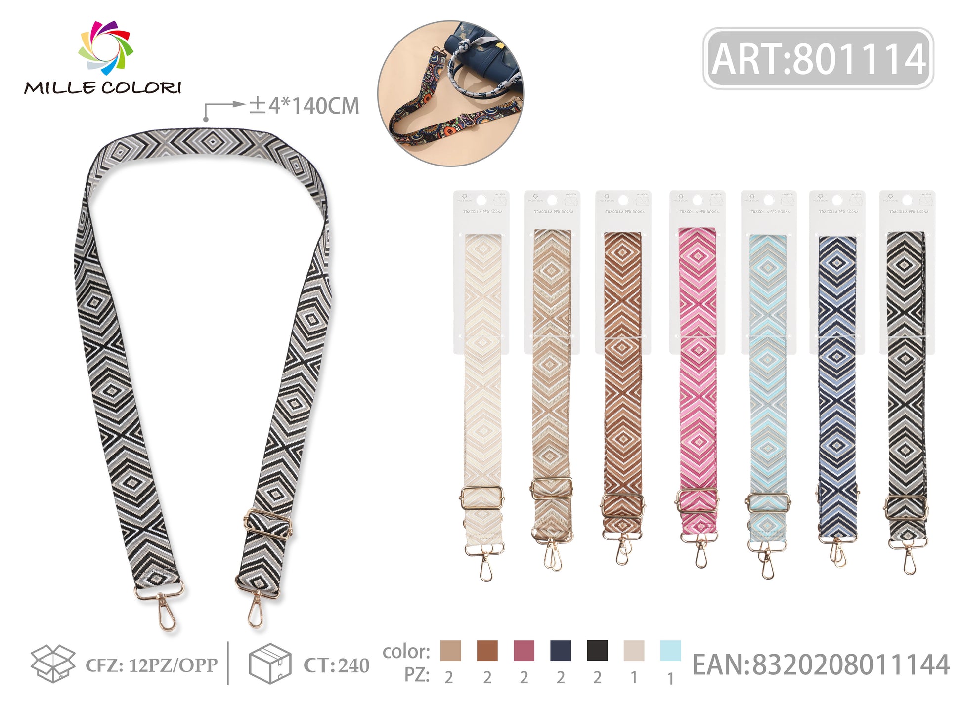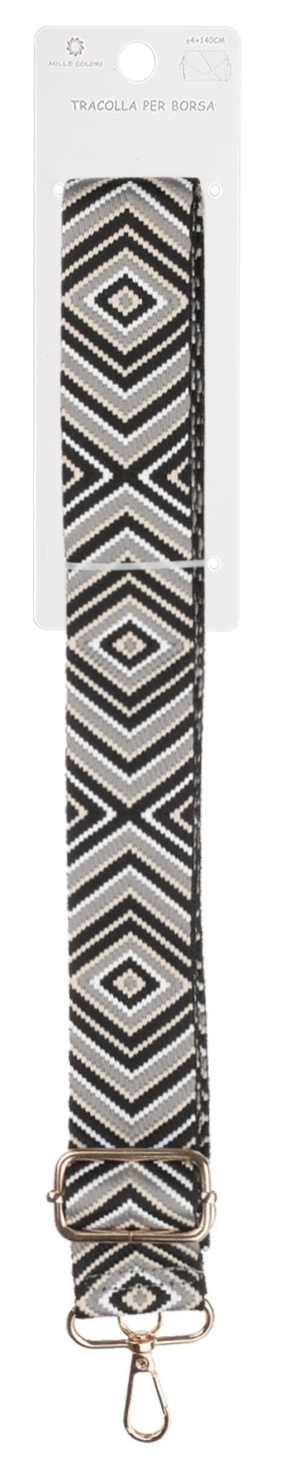 Tracolla Regolabile per Borsa Cinturino con Motivo Geometrico a Rombo, Ganci in Metallo -140cm/4cm