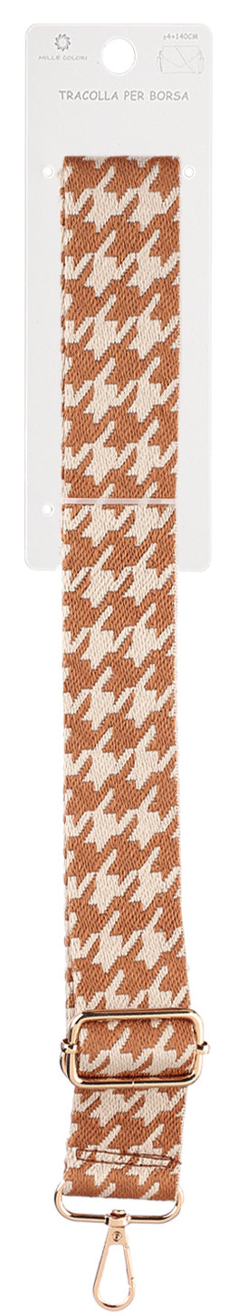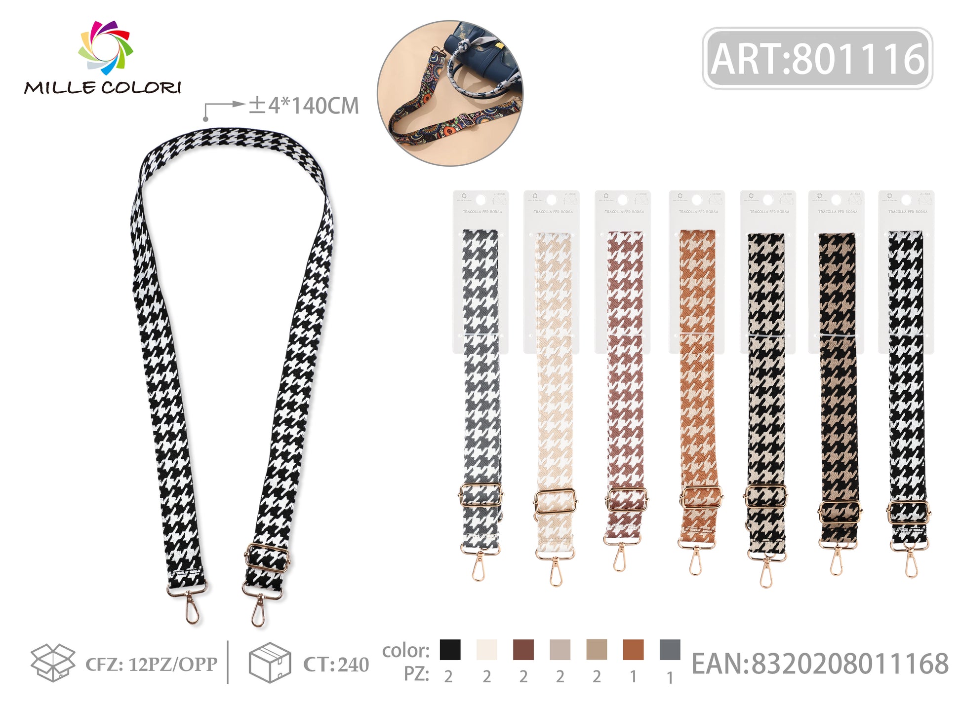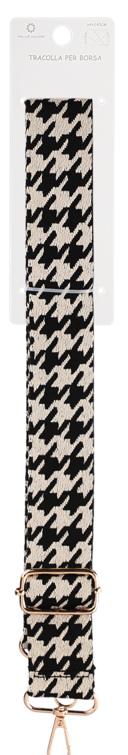 Tracolla Regolabile per Borsa Cinturino con Motivo Pied de Poule Classico, Ganci in Metallo -140cm/4cm