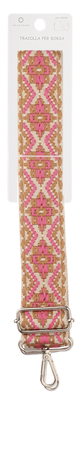 Tracolla Regolabile per Borsa – Cinturino con Motivo a Mosaico Etno-Boho, Ganci in Metallo -140cm/5cm