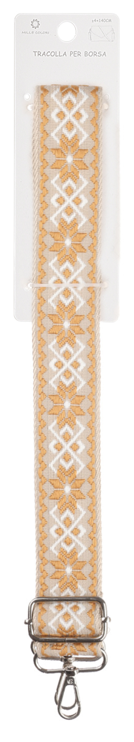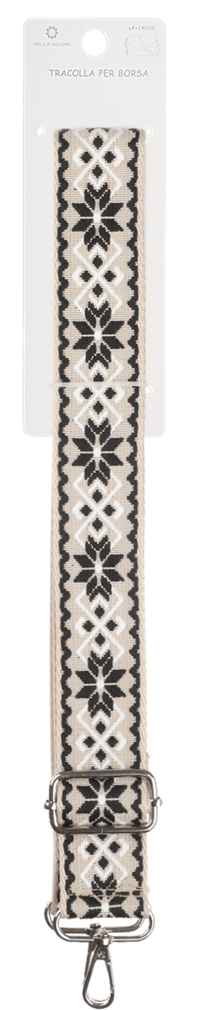 Tracolla Regolabile per Borsa – Cinturino con Ricamo a Fiori e Motivo Geometrico, Ganci in Metallo - 140cm/5cm