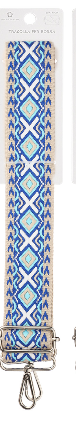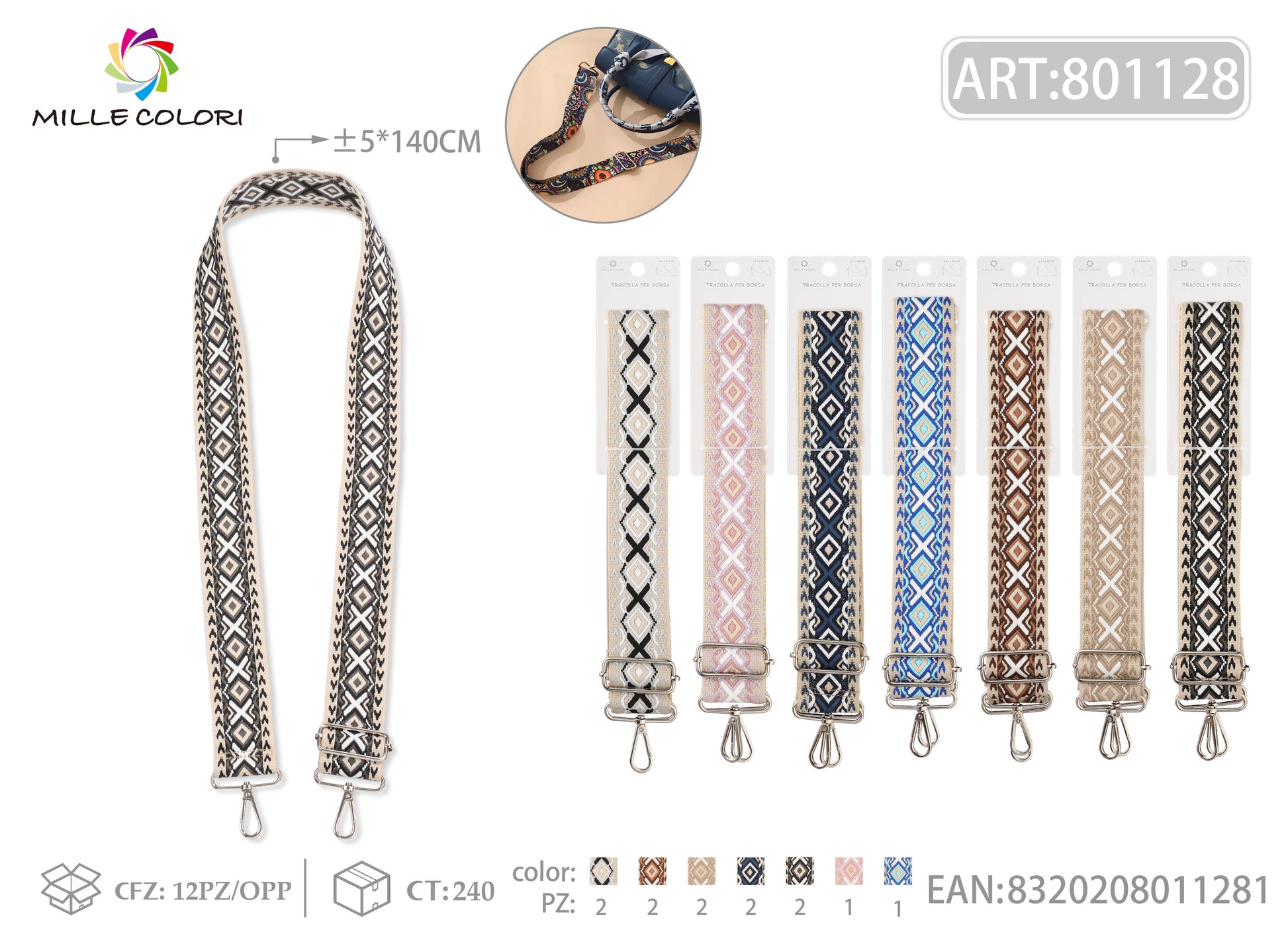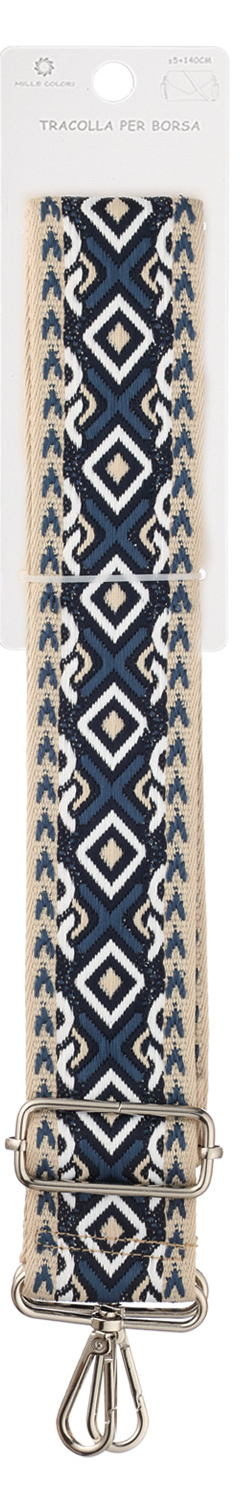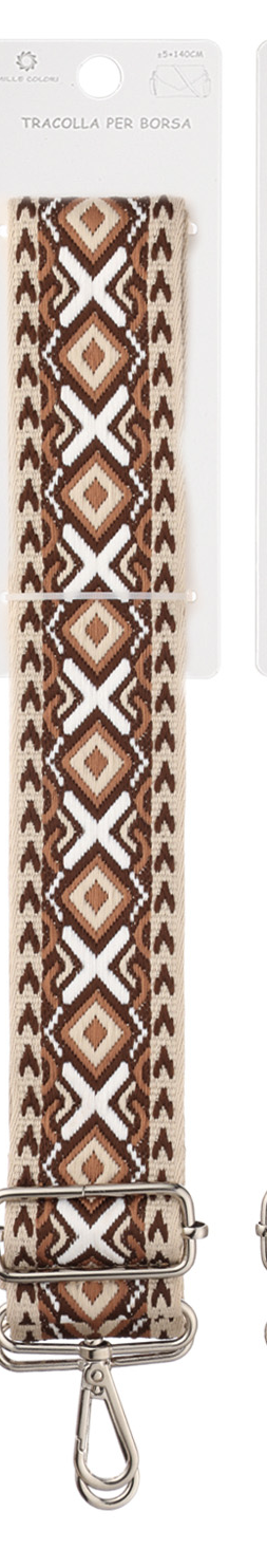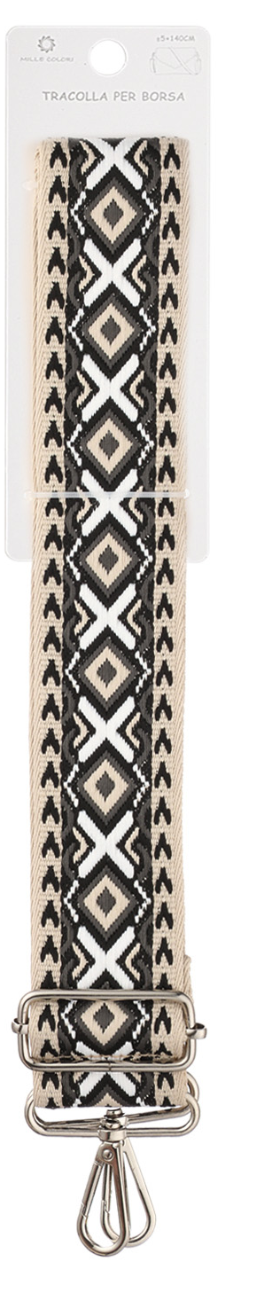 Tracolla Regolabile per Borsa – Cinturino con Motivo Etnico Geometrico, Ganci in Metallo- 140cm/5cm