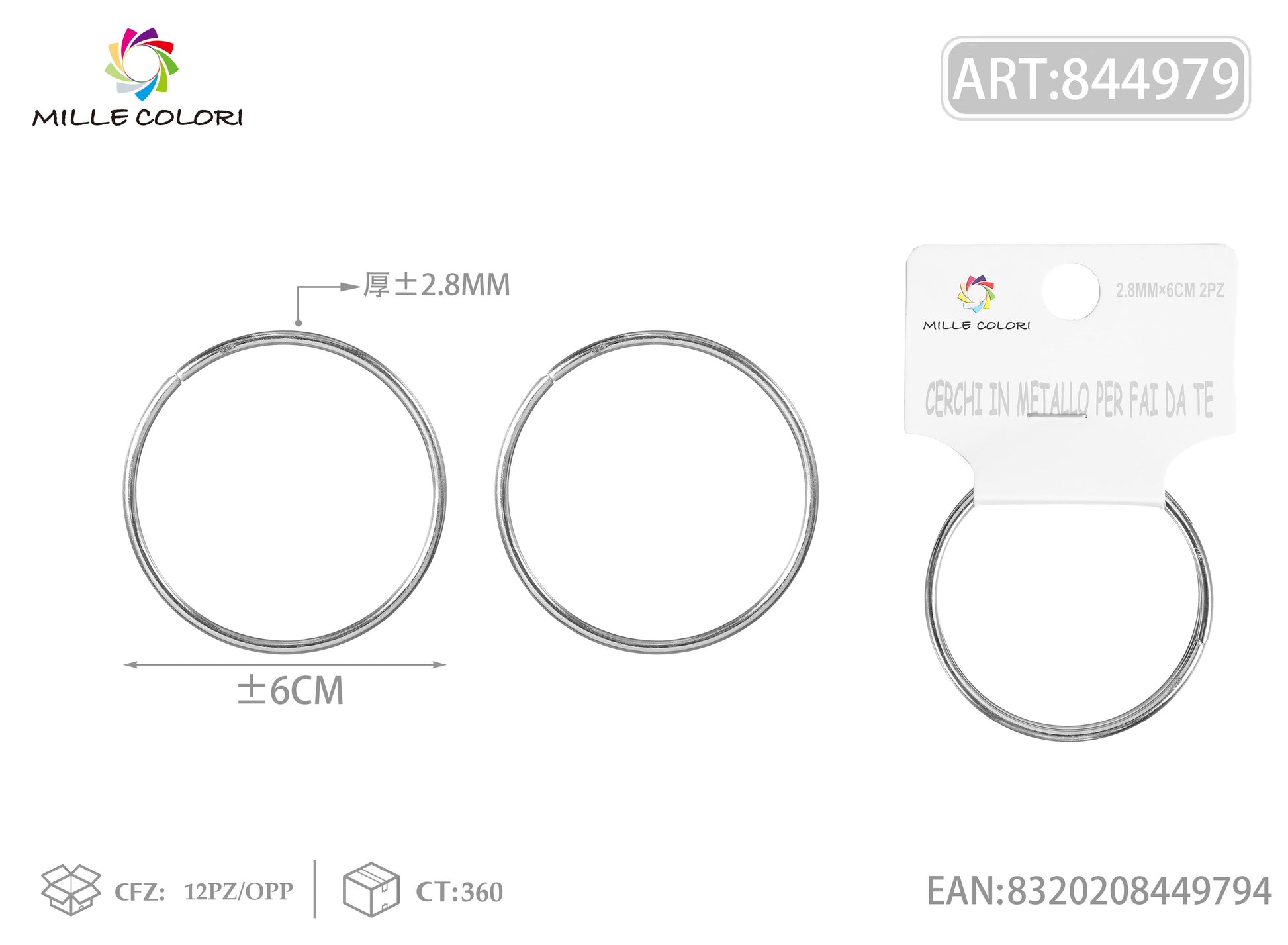 Cerchi in metallo per borse 2.8mm*6cm argento 2pz
