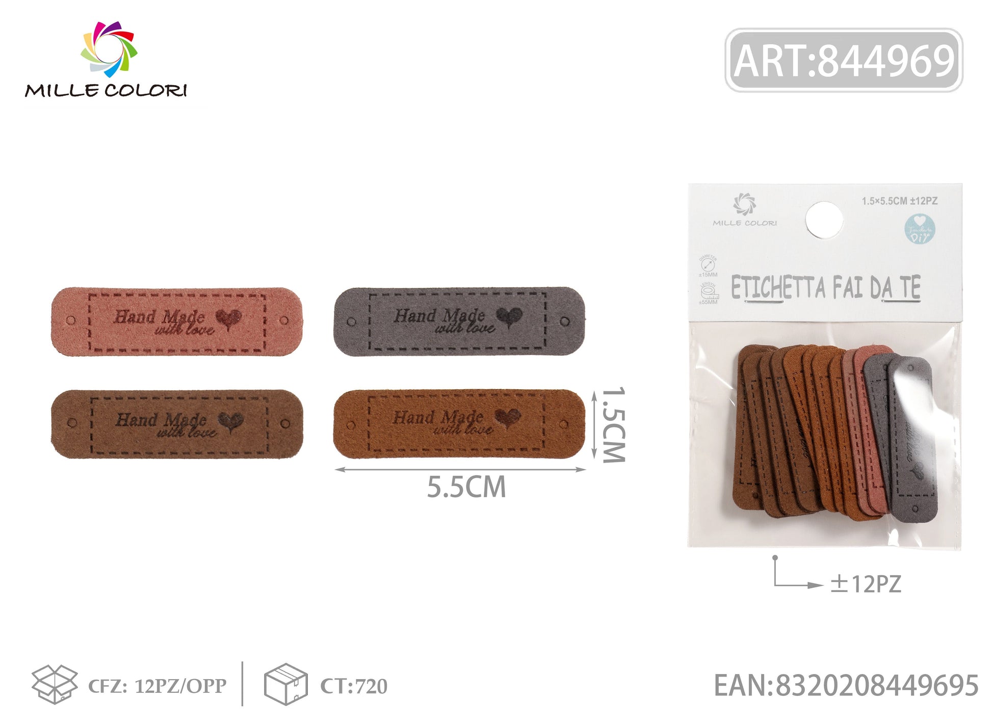 Etichette artigianali adatte per progetti fai da te, cucito e lavori creativi.