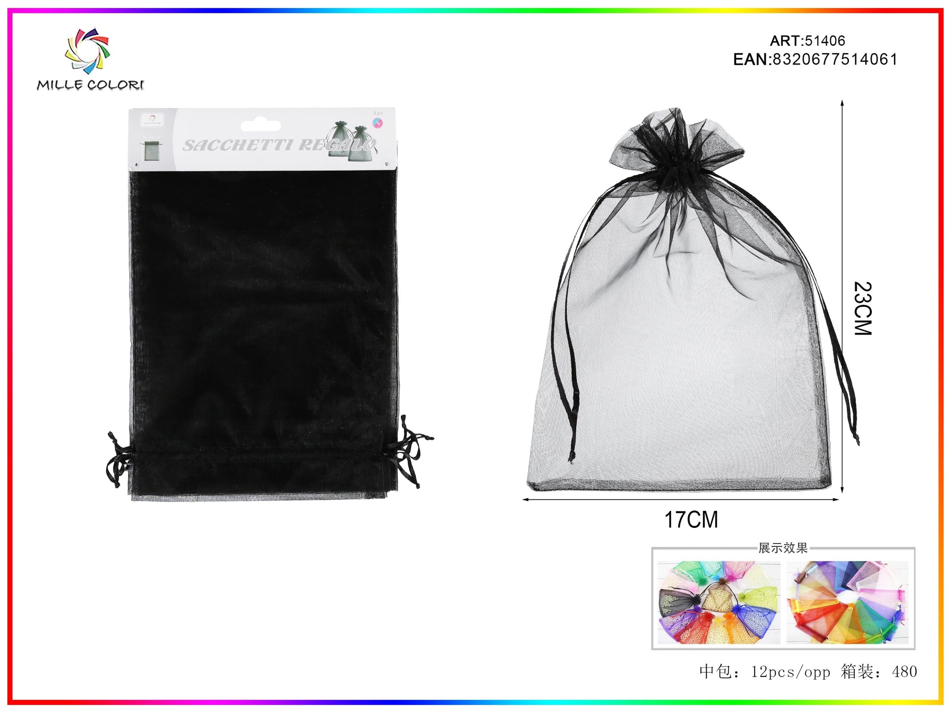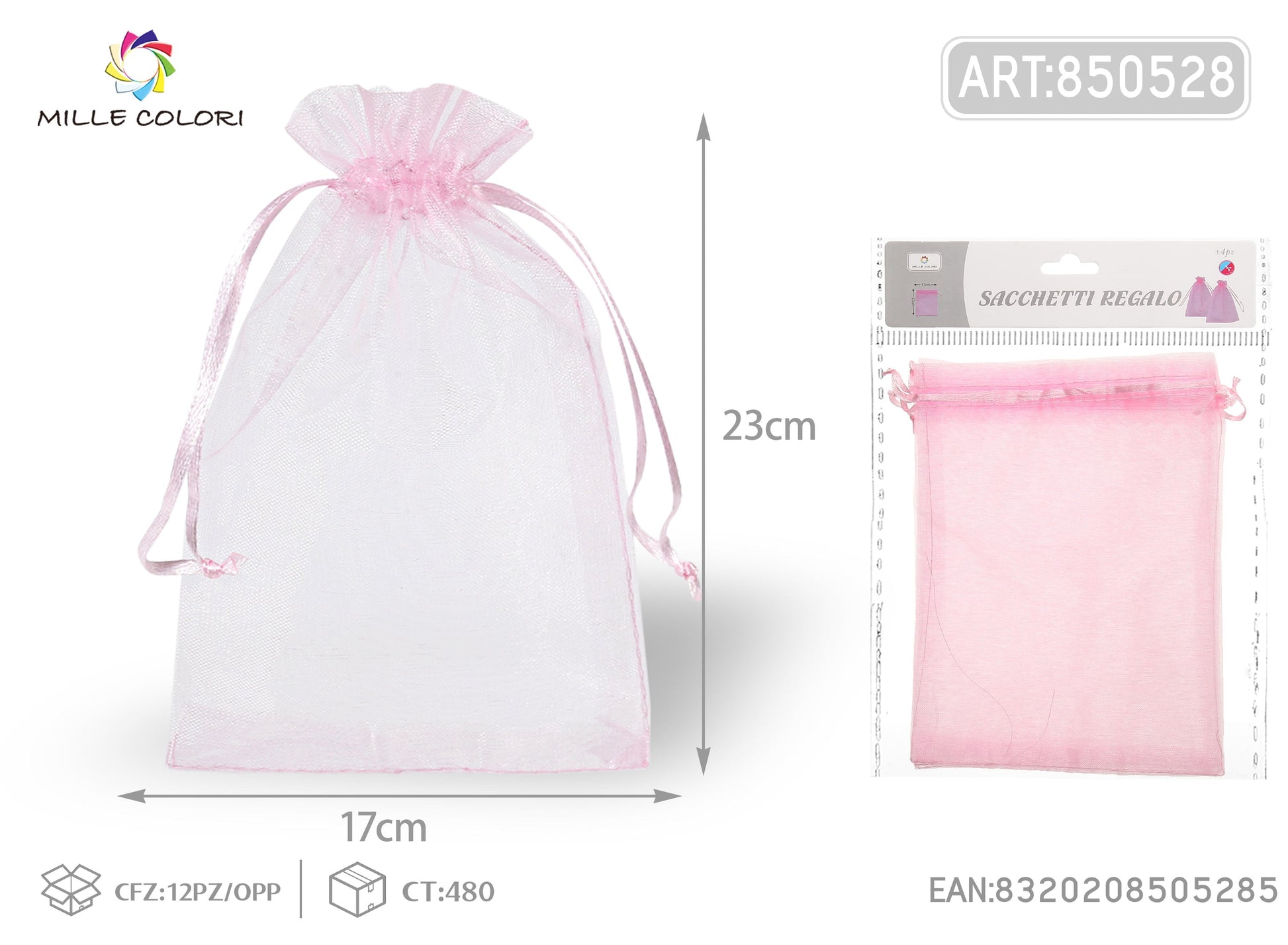 Sacchetti in organza di alta qualita, eleganti e versatili, perfetti per regali, bijoux e piccoli oggetti. Disponibili in diverse misure e colori, con chiusura a laccio pratica e raffinata.