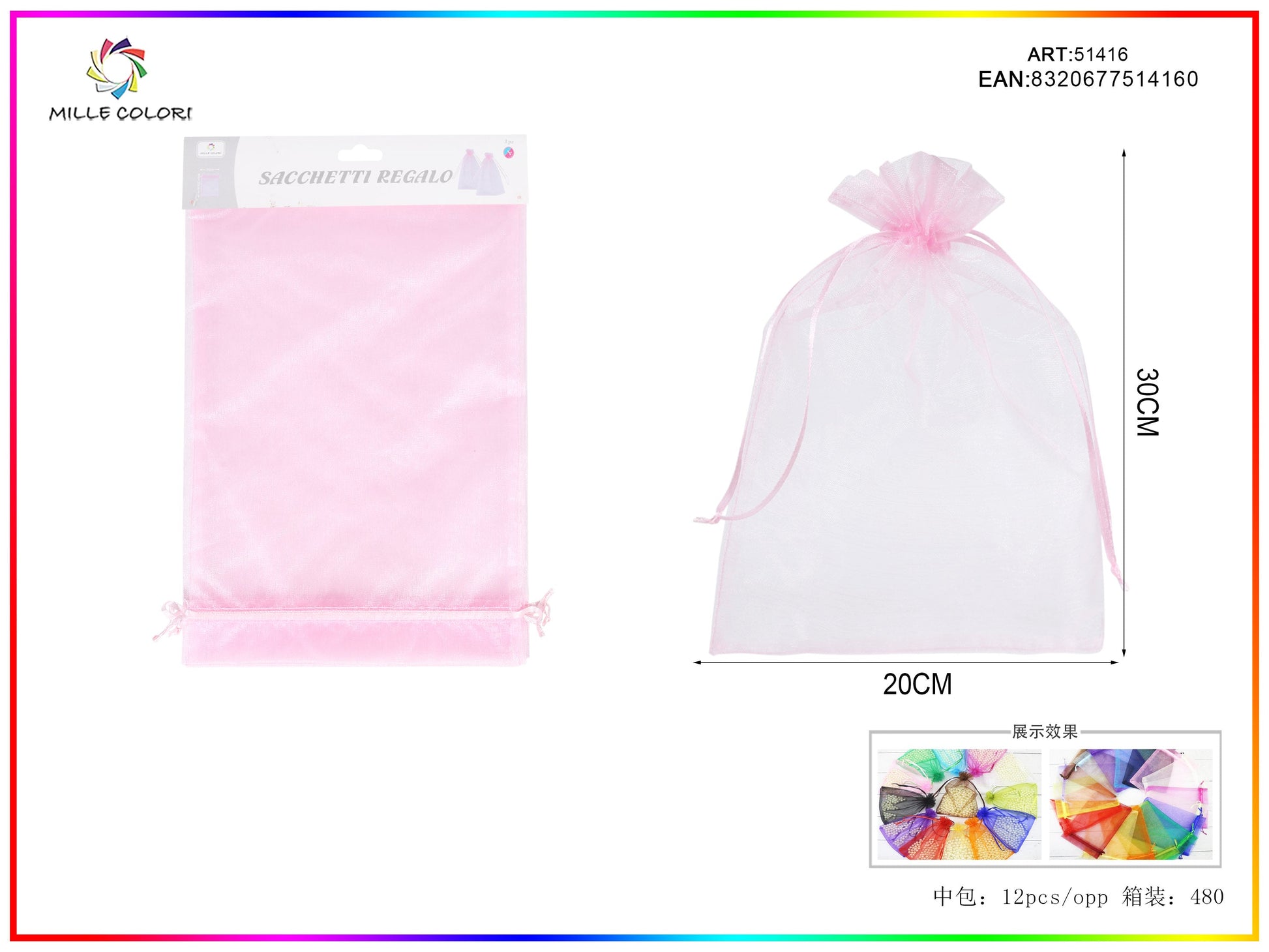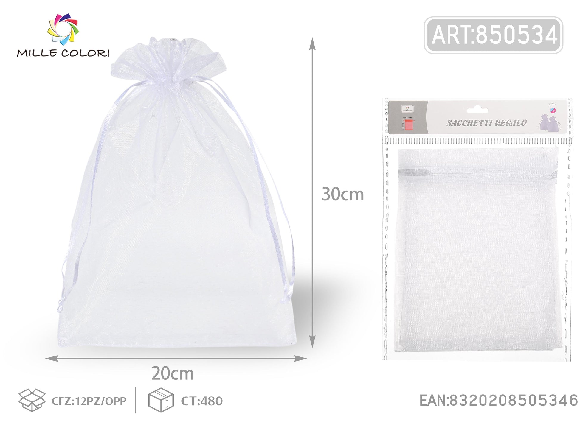 Sacchetti in organza di alta qualita, eleganti e versatili, perfetti per regali, bijoux e piccoli oggetti. Disponibili in diverse misure e colori, con chiusura a laccio pratica e raffinata.