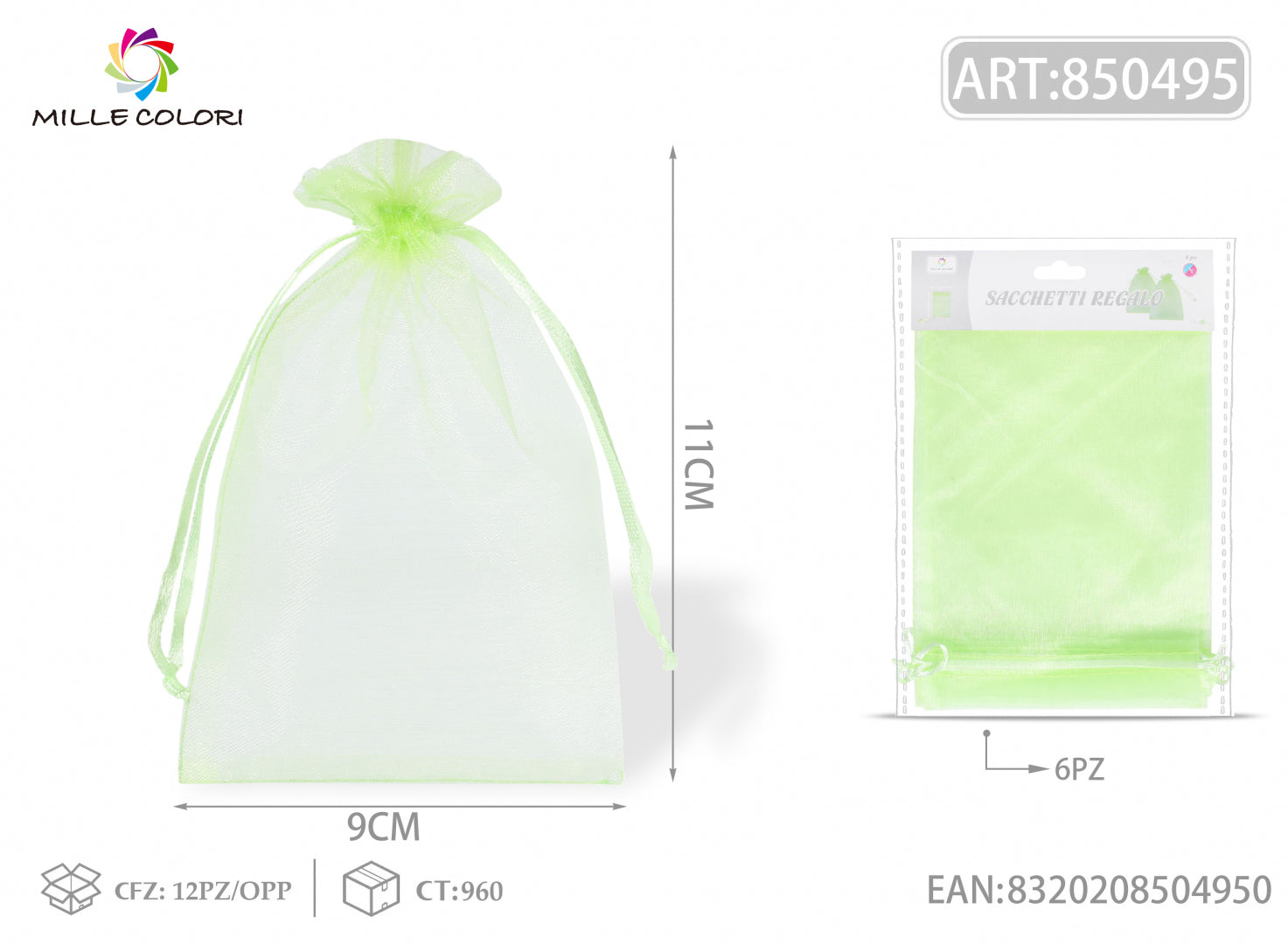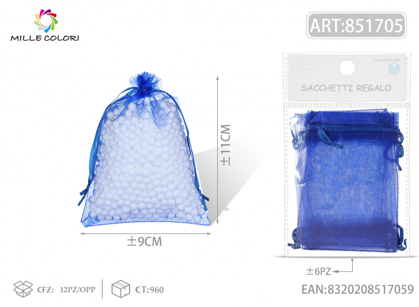 Sacchetti in organza di alta qualita, eleganti e versatili, perfetti per regali, bijoux e piccoli oggetti. Disponibili in diverse misure e colori, con chiusura a laccio pratica e raffinata.