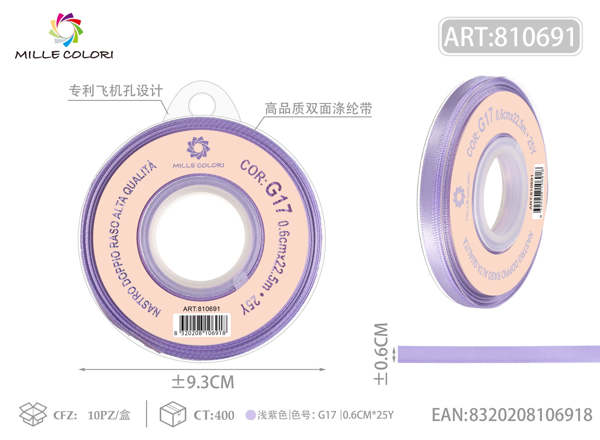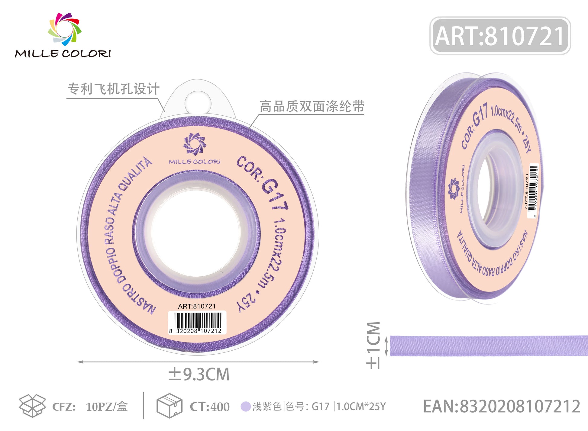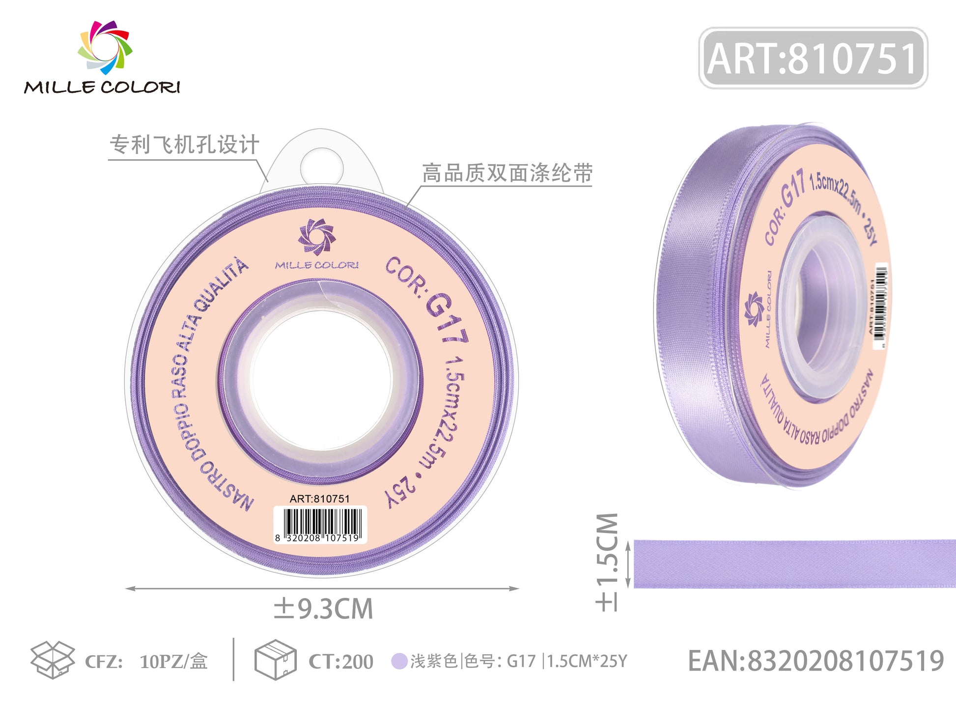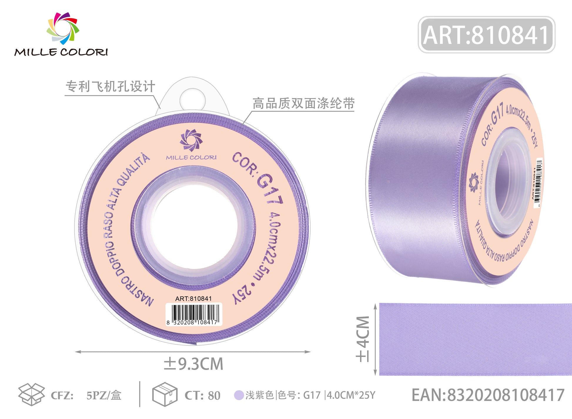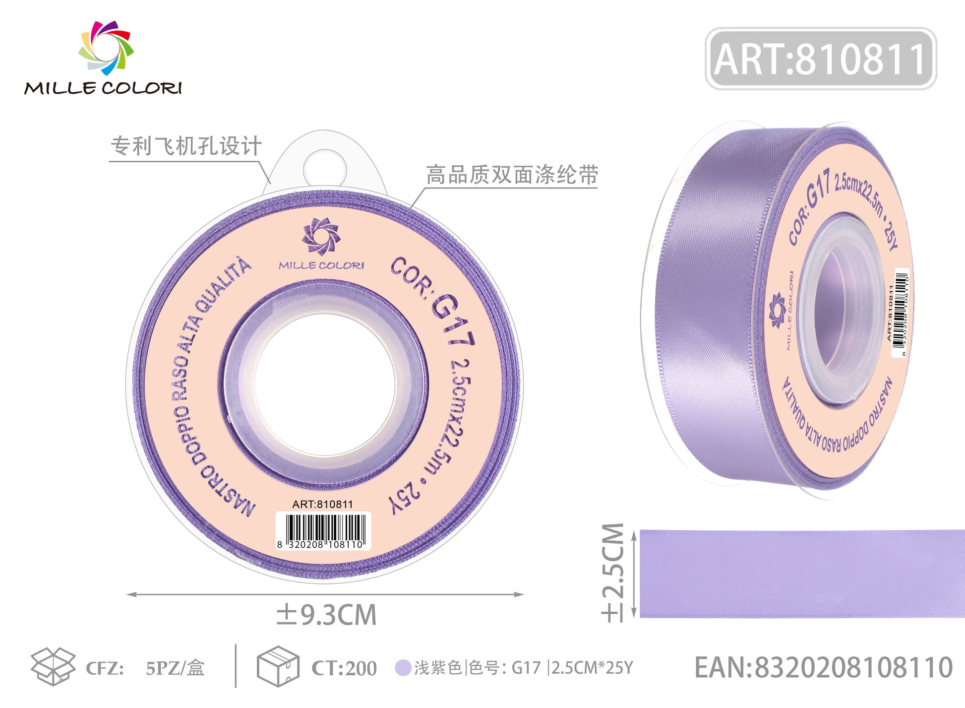 NASTRO DI DOPPIO RASO - LILLA
