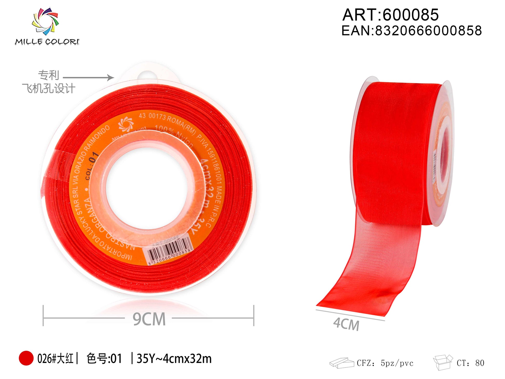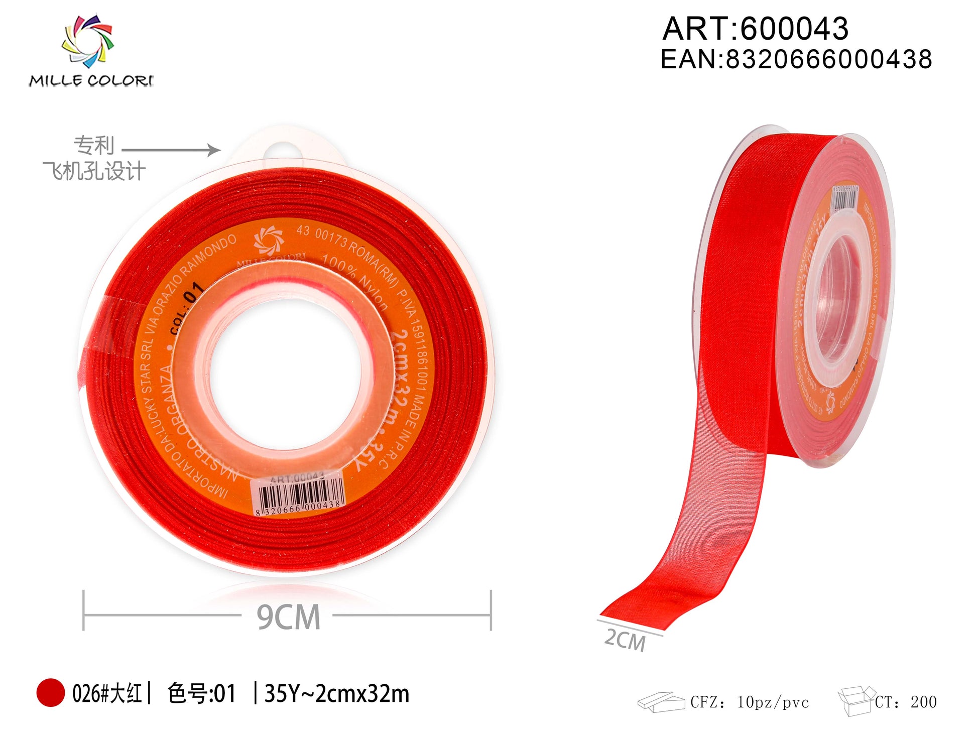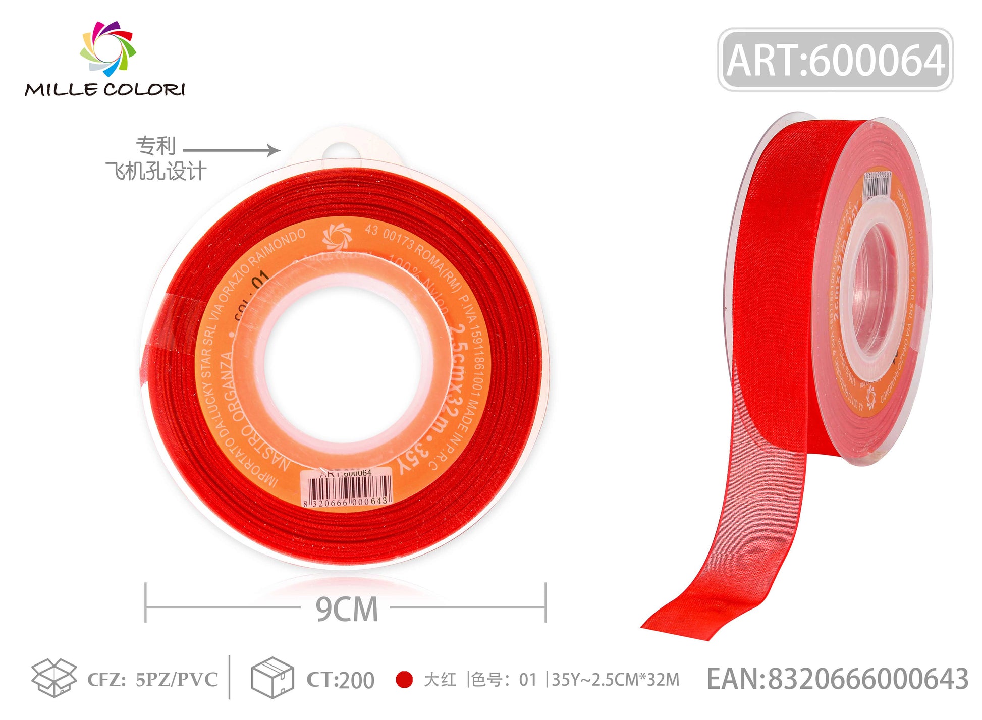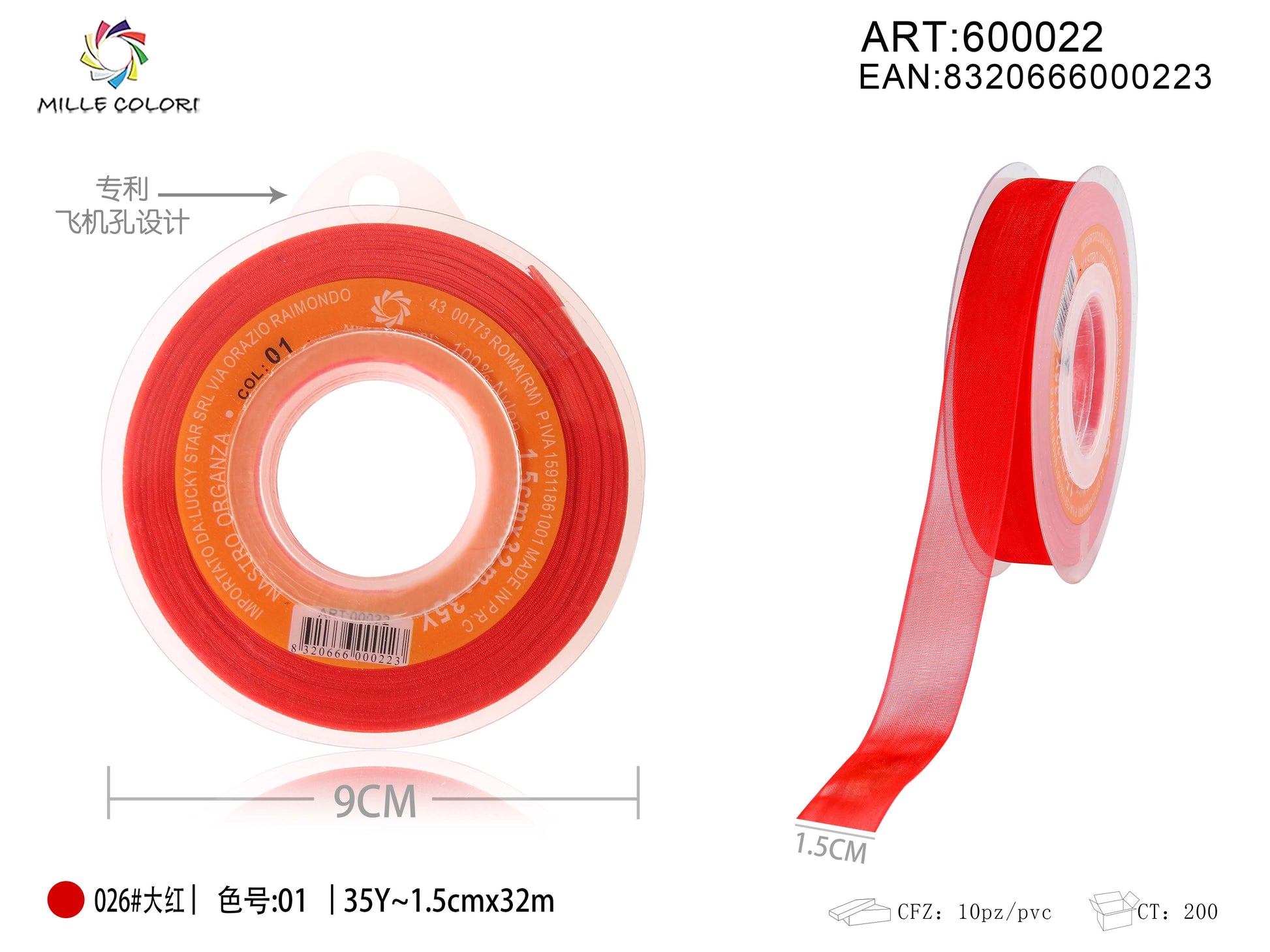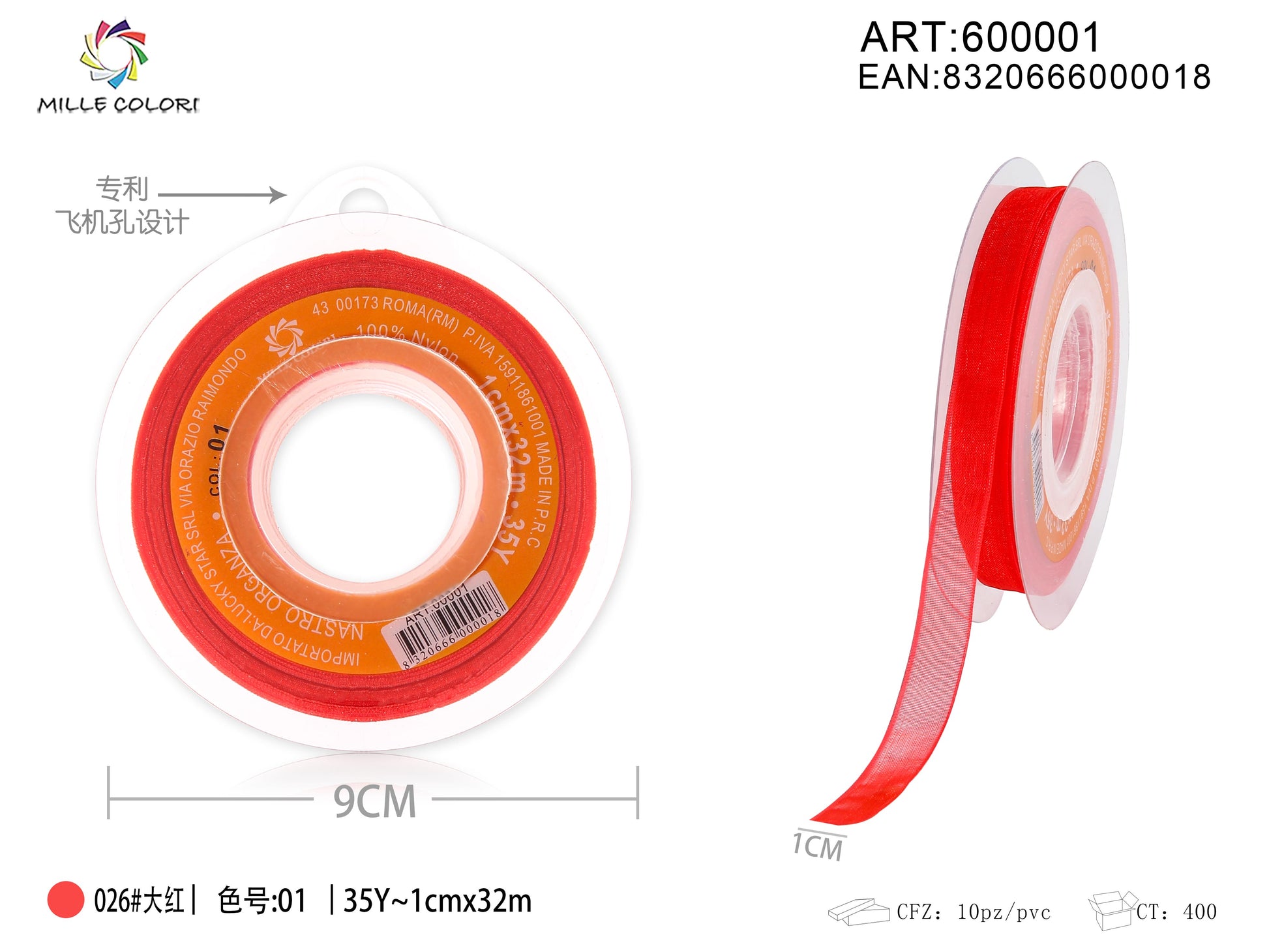 NASTRO ORGANZA - ROSSO VIVO