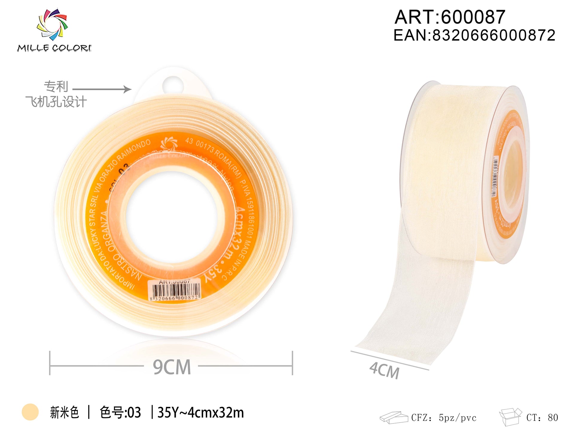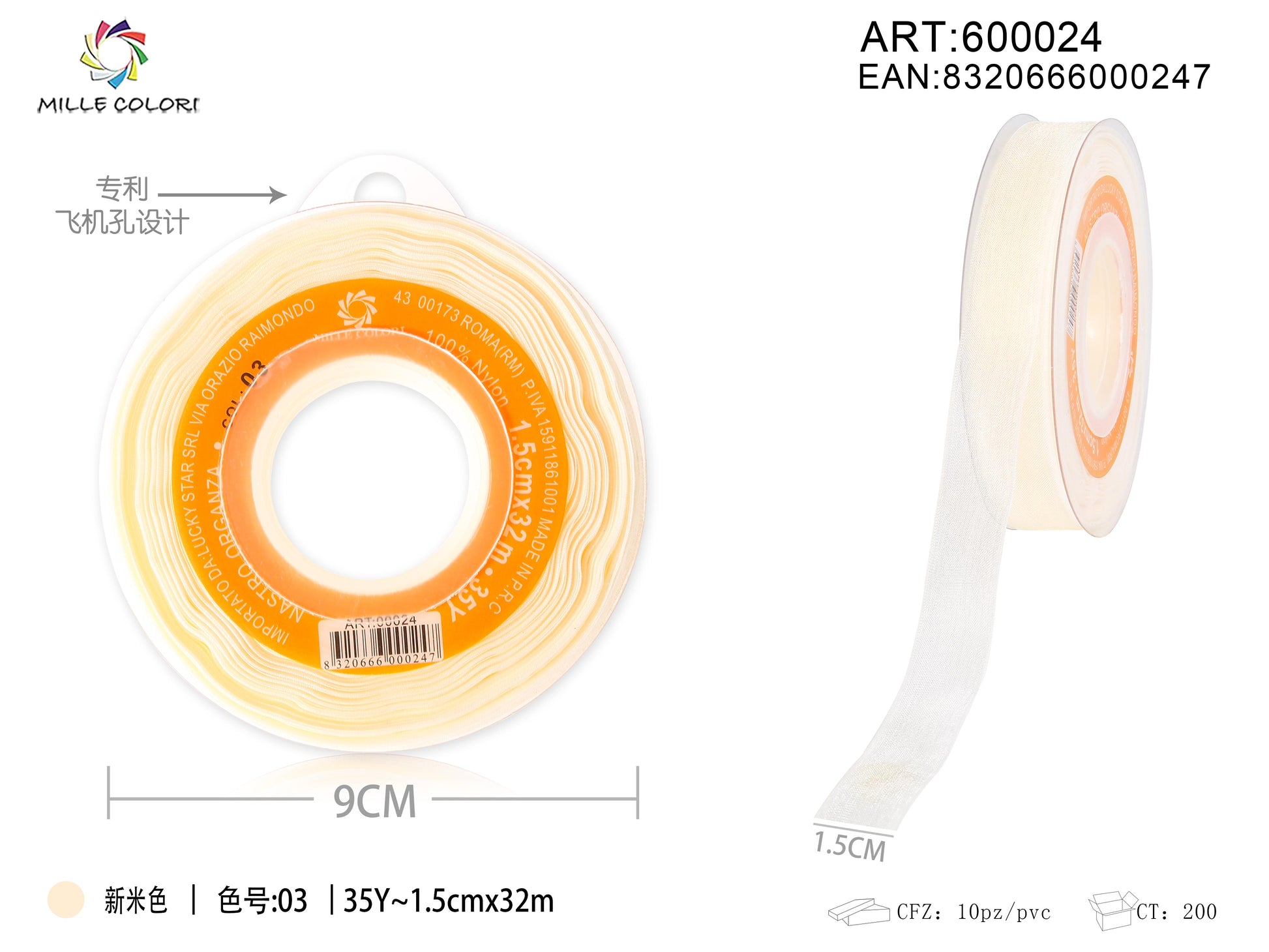 NASTRO ORGANZA - AVORIO TENUE