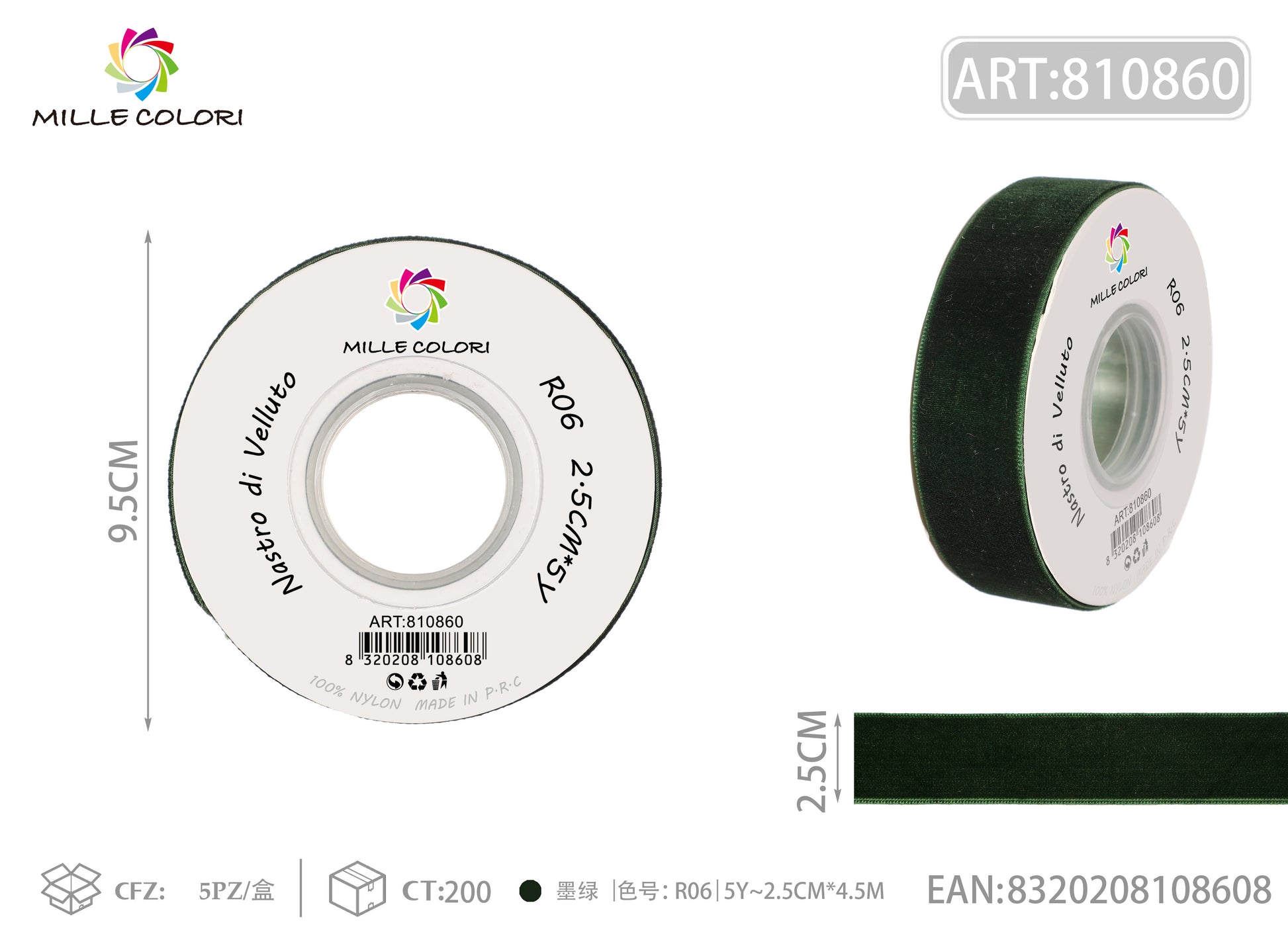 NASTRO IN VELLUTO - VERDE BOTTIGLIA